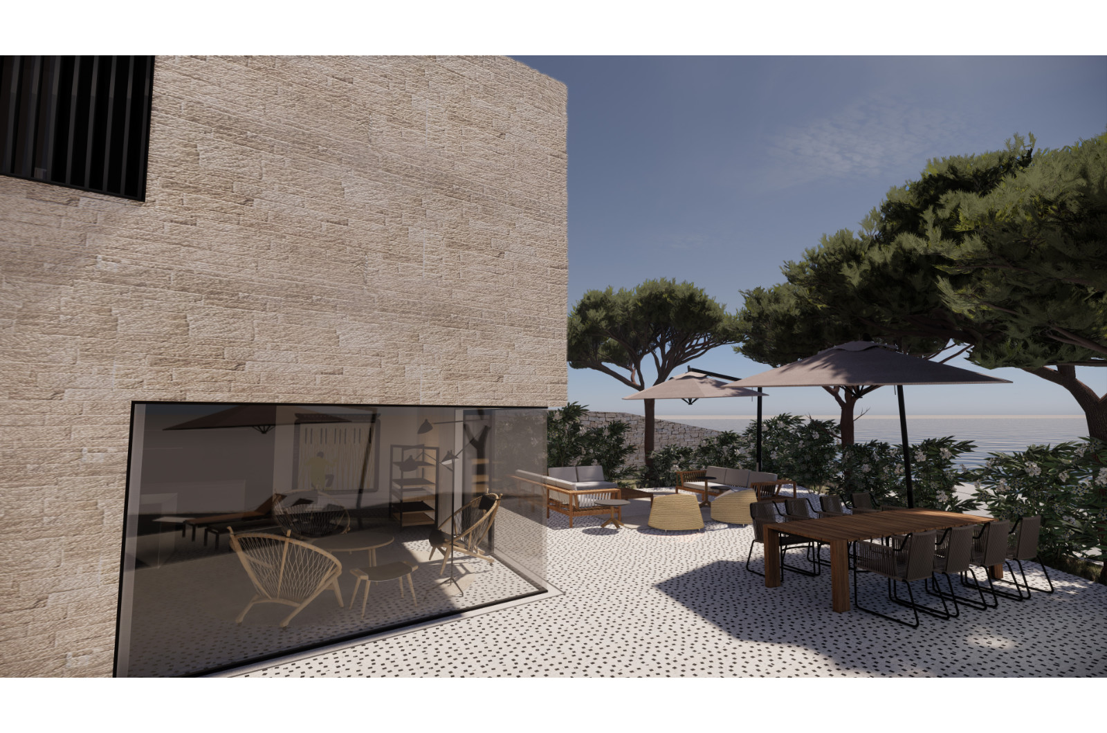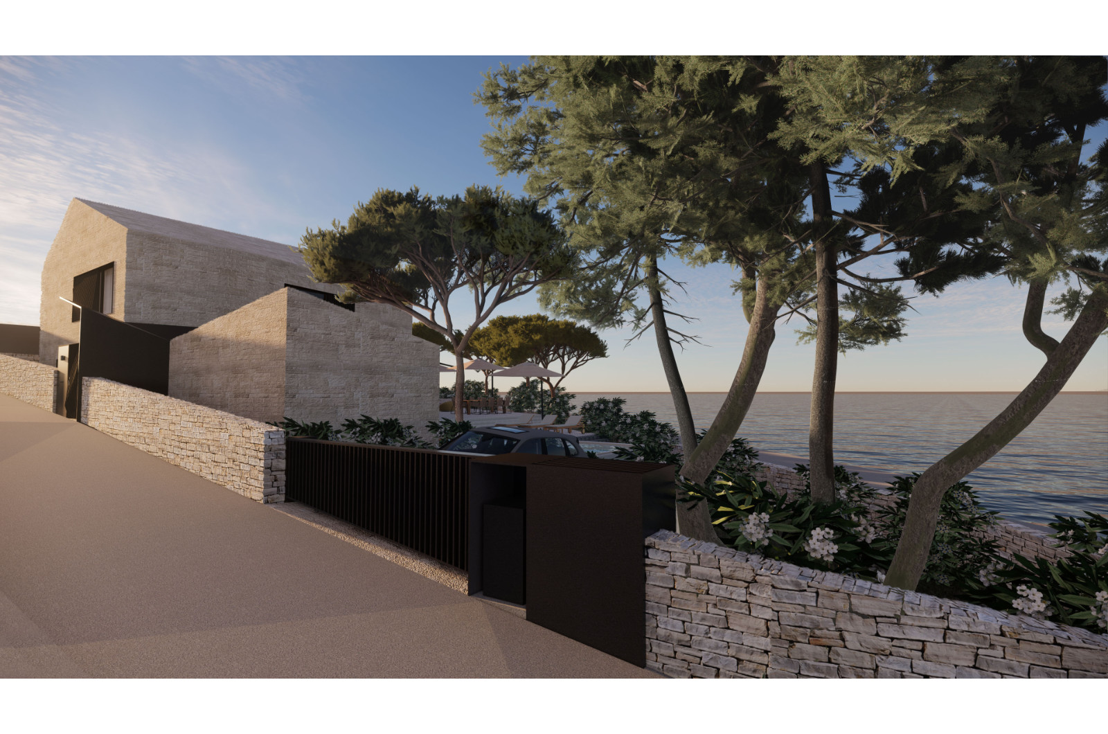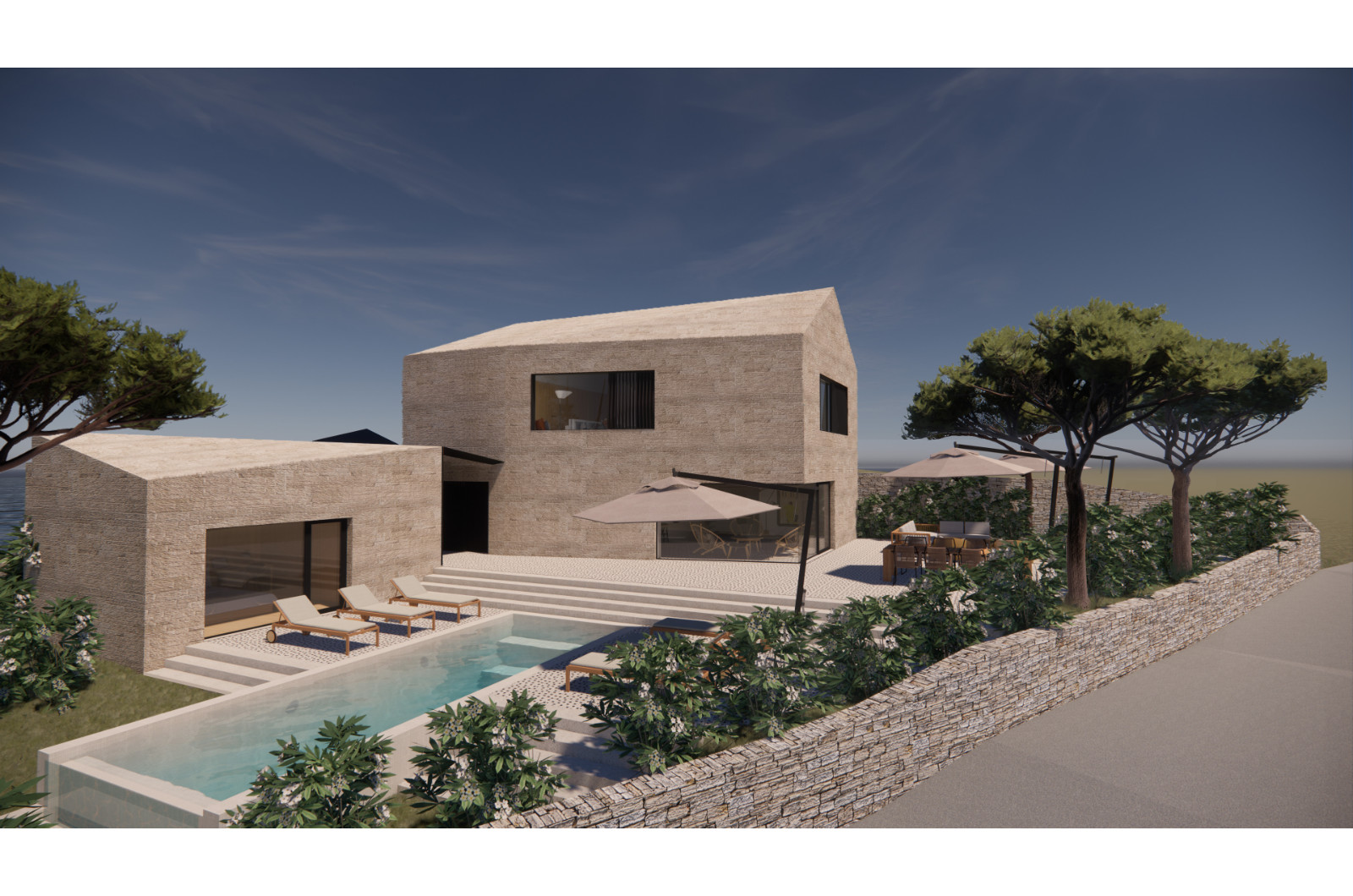 This family villa project is located in the Bay of Maslinica on the Island of Šolta. The Bay of Maslinica is a beautiful vista of an olive tree landscape with a pine tree forest, hidden pebble beaches and picturesque stone houses.