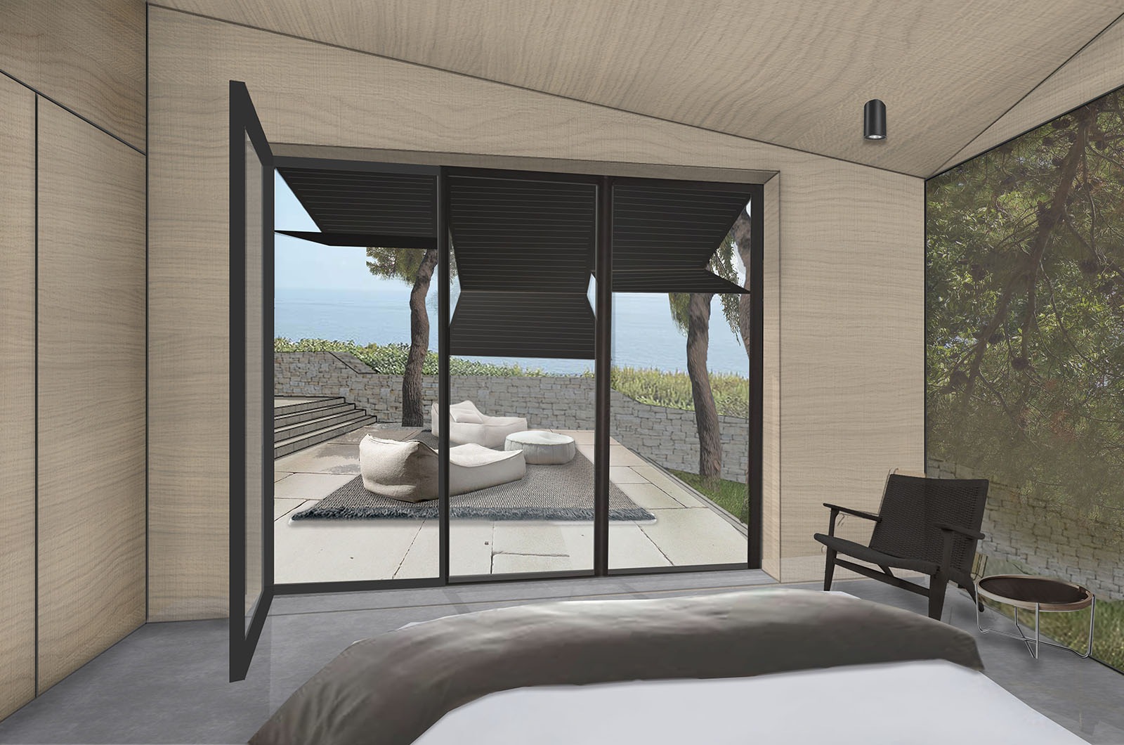 The buildings, with their positioning on the land parcel, form a semi-open internal yard with terraces and an outdoor swimming pool. The project provides for the implementation of smart home system segments according to the users' wishes and needs, use of alternative sources of energy and implementation of superb materials, equipment, woodwork and ironmongery.